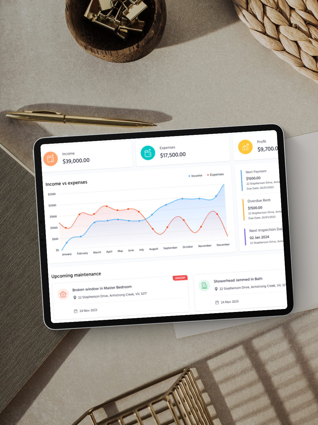 Automatic financial records: rent, commission, maintenance costs to be exported as CSV or PDF for tax time.